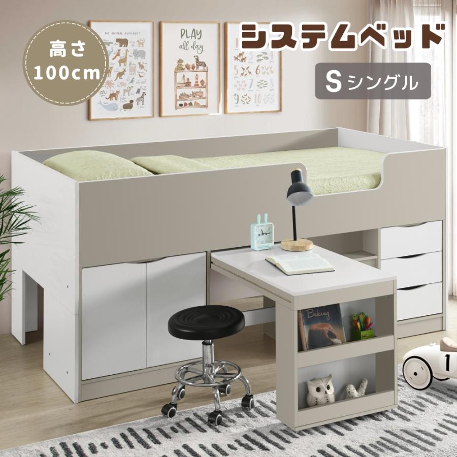 システムベッド ロフトベッド 階段付き S 木製 高さ100cm シングル ベッド ロータイプ ベッド デスク 机付き