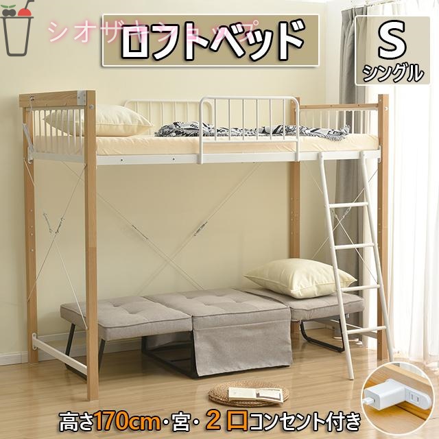 ■ロフトベッド パイプベッド シングルベッド コンセント付き 宮 高さ170cm ロフトベッド 大人用 二段ベッド 子供部屋 子供ベッド スチー