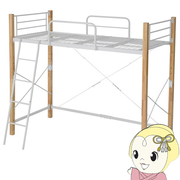 ■ロフトベッド 天然木脚 シングル 高さ調節 可能 パイプベッド ロフト タイプ 天然木 頑丈 丈夫