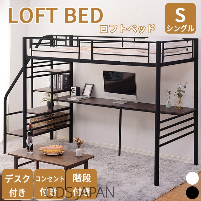 ■ロフトベッド 子供 おしゃれ ベッド シングル 白 ベッドフレーム 棚付き シングルベッド 宮棚付きベッド コンセント ベット おしゃれ 可