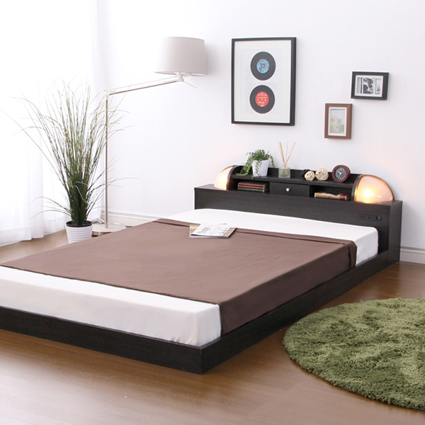 ■ベッド セミダブル ローベッド ロータイプ 低い 低床 宮付き ヘッドボード 枕元 棚 携帯 スマホ ティッシュ メガネ リモコン ラック ライ