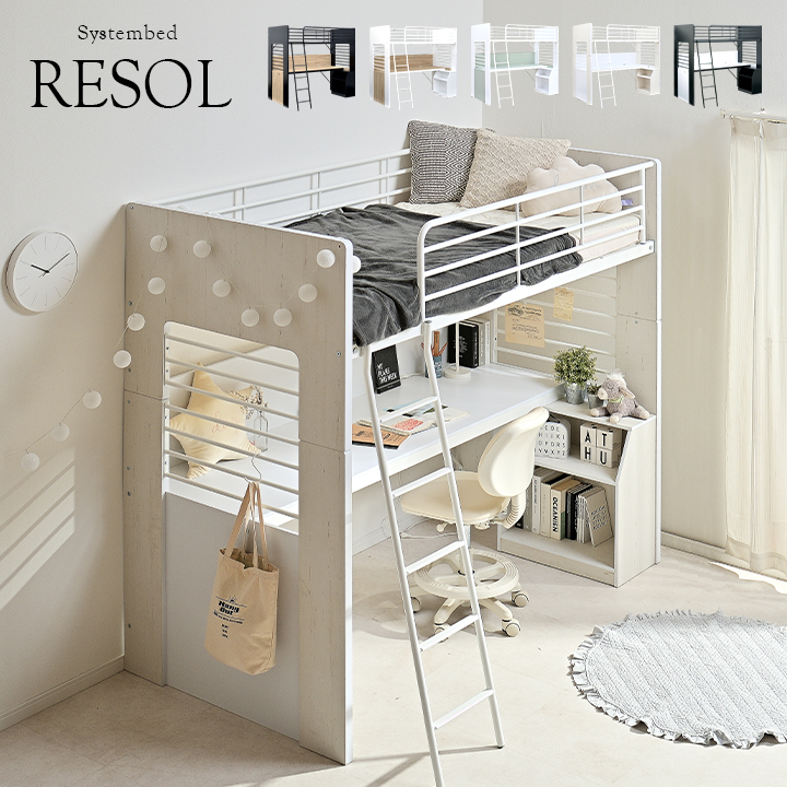 ■システムベッド Shelm4(シェルム4) 8色対応 ロフトベッド ロフトベット システムデスク システムベッドデスク デスクベッド ロータイプ