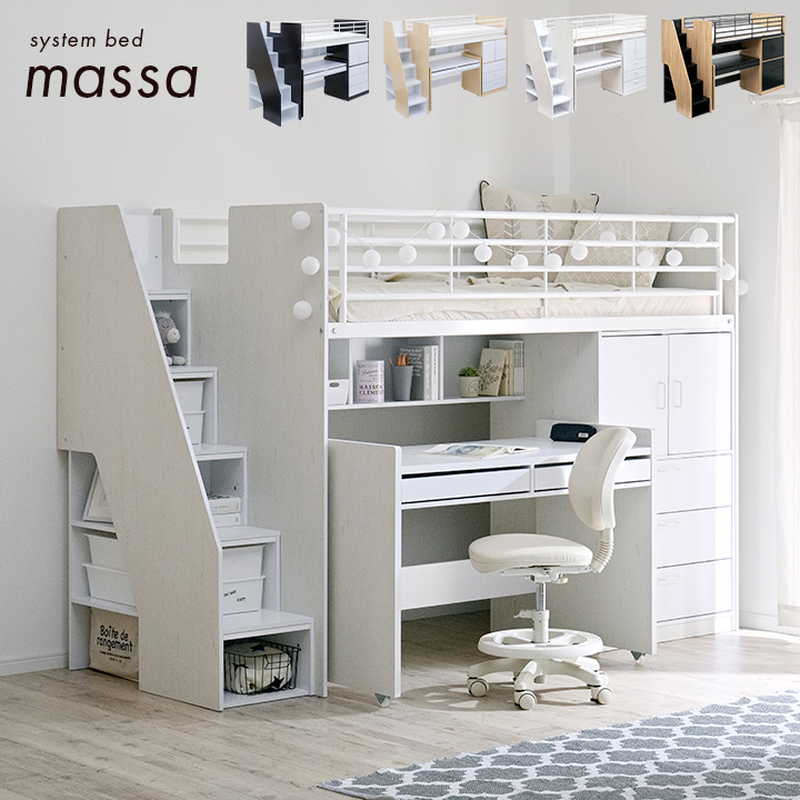 ■【大容量収納/階段付き】ロフトシステムベッド massa3(マッサ3) 4色対応 システムベッド ロフトベッド システムベッドデスク システムベ