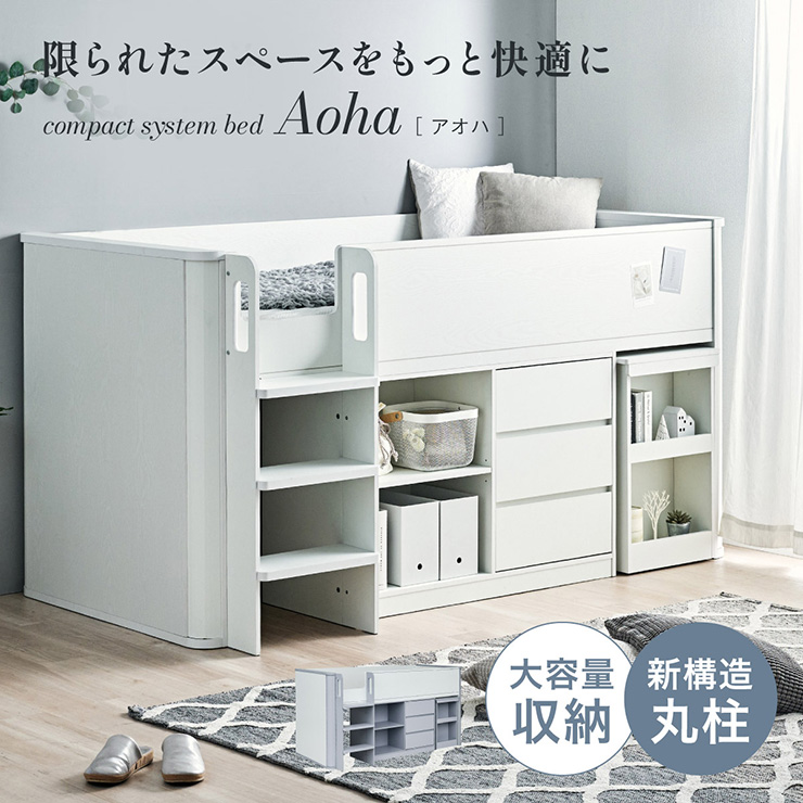 ■システムベッド ロフトベッド ロータイプ 大人 子供 学習机 階段 シングルサイズ システムベッド Aoha(アオハ) 2色対応 システムベット