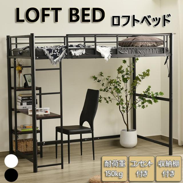 ロフトベッド パイプベッド 耐震ベッド シングルベッド コンセント付き 耐荷重150kg 高さ170cm 収納棚 はしご付き 子供ベッド 二段ベッド 子供部屋二段ベッド スチール ベッドパイプ