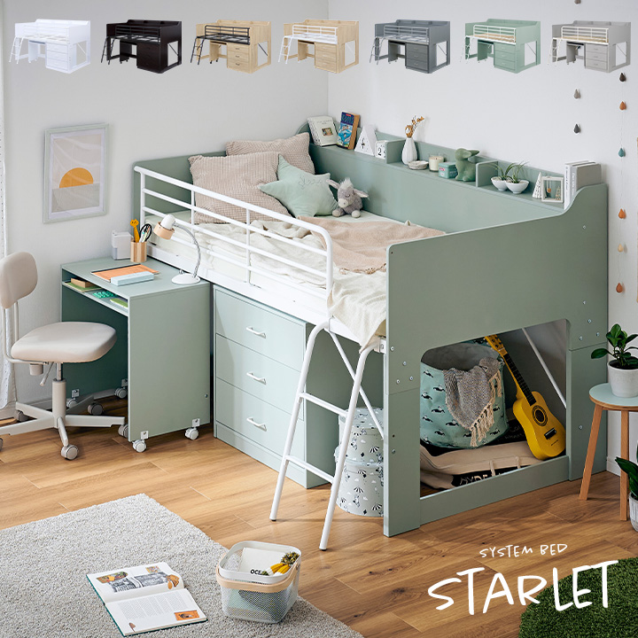 ■ロフトベッド システムベッド コンパクト 子供 子供部屋 ベッド 大人 学習机 ロータイプ システムベッドデスク デスク付き 木製 子供部屋