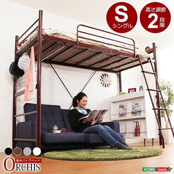 ■ロフトベッド パイプベッド シングルベッド 二段ベッド コンセント付き 子供ベッド ロータイプ ミドルタイプ 耐荷重150kg 分割可能 子供