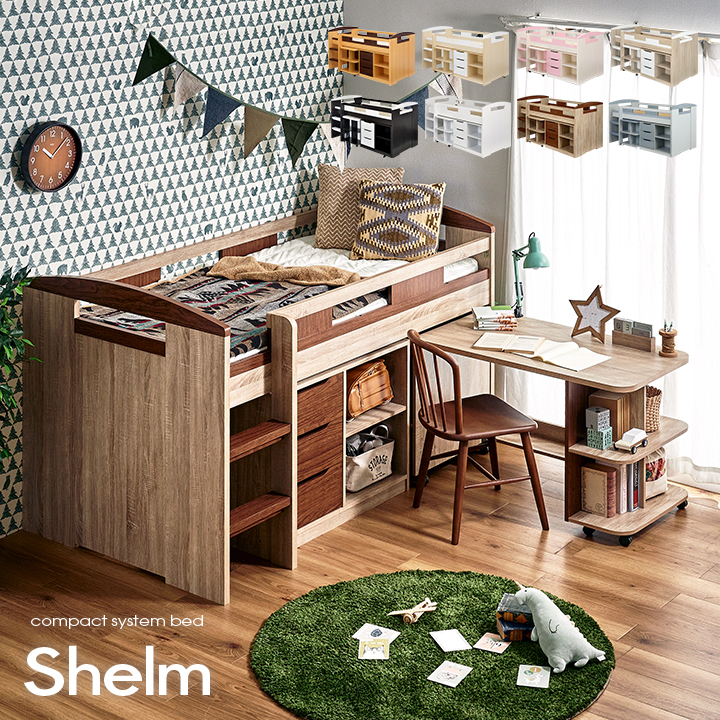 ■システムベッド Shelm4(シェルム4) 8色対応 ロフトベッド ロフトベット システムデスク システムベッドデスク デスクベッド ロータイプ