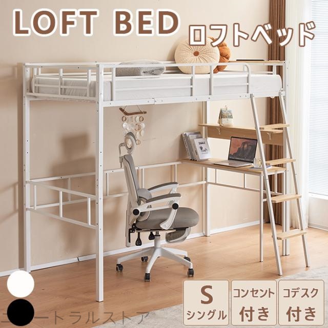 ロフトベッド パイプベッド シングルベッド 二段ベッド コンセント付き 子供ベッド ロータイプ ミドルタイプ 耐荷重150kg 分割可能 子供部屋 スチール 耐震ベッド 一人暮らし 北欧風