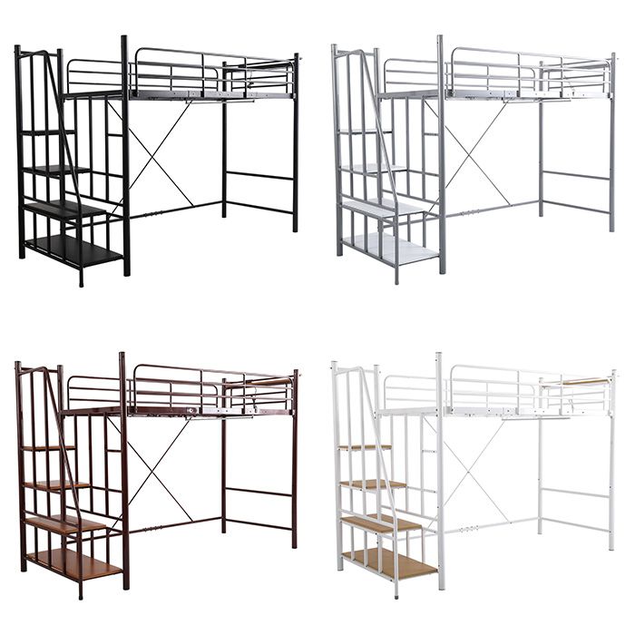 ロフトベッド パイプベッド シングル デスク付き スチール 耐震 パイプ 収納棚 階段付き 左右入れ替え可能 ベッド 収納 大人 一人暮らし 子供ベッド 北欧風