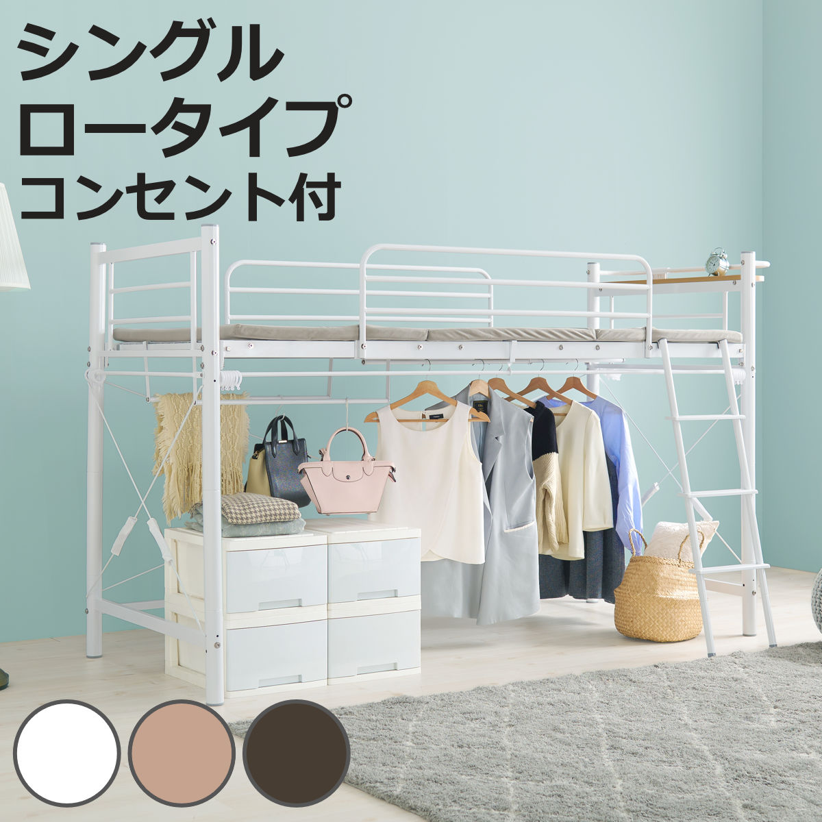 ■ロフトベッド ロータイプ ミドルタイプ ハイタイプ カーテン取付 パイプベッド 子供部屋 ベッドフレーム コンセント付き ロフトベッド [