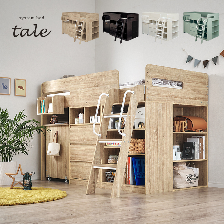 ■【充実の収納スペース】システムベッド ロフトベッド システムデスク システムベッドデスク デスクベッド ロータイプ ミドル ベッド 机付