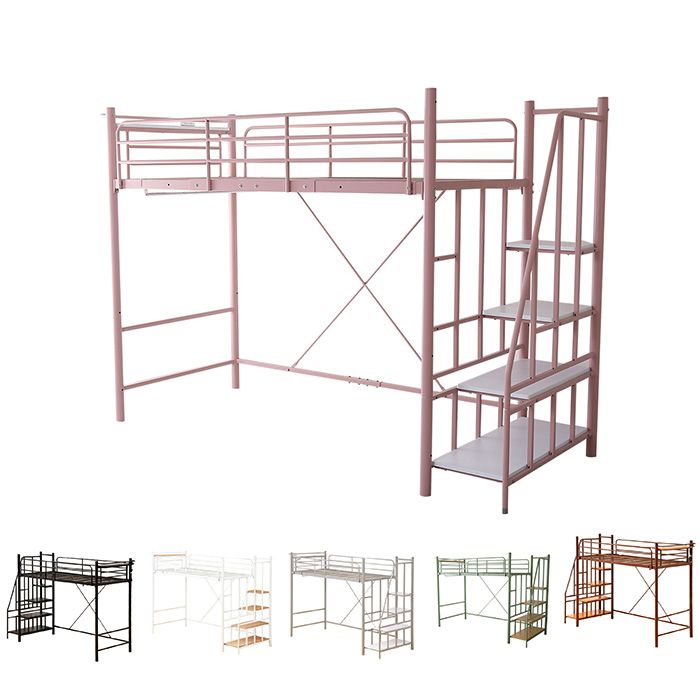 ■ふぃ ロフトベッド 階段付き 耐震ベッド パイプベッド 収納ペース 子供ベッド 二段ベッド Sシングル 頑丈 スチール システムベッド 省ス