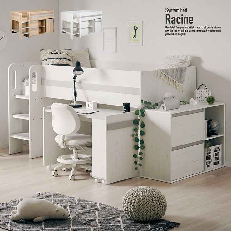 ■ロフトベッド システムベッド 高さ72cm デスク チェスト 3点セット Racine(ラシーン) 2色対応 ロフトベット システムベット ロータイプ