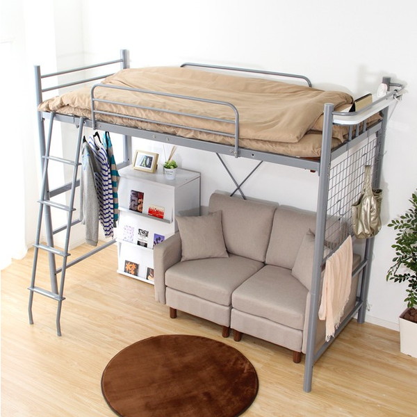 ■ホームテイスト HT70-94 宮・コンセント付き ロフトベッド【ORCHIS-オーキス-】 シルバー メーカー直送