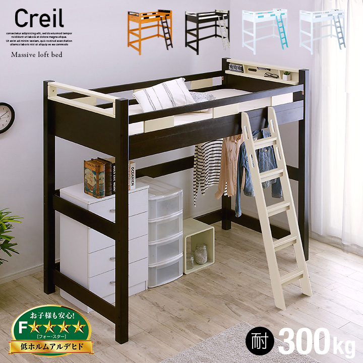 ■【耐荷重300kg/照明&コンセント付き】宮付き ハイタイプ ロフトベッド Creil loft5(クレイユ ロフト5) H180cm 4色対応 木製 ロフトベッ