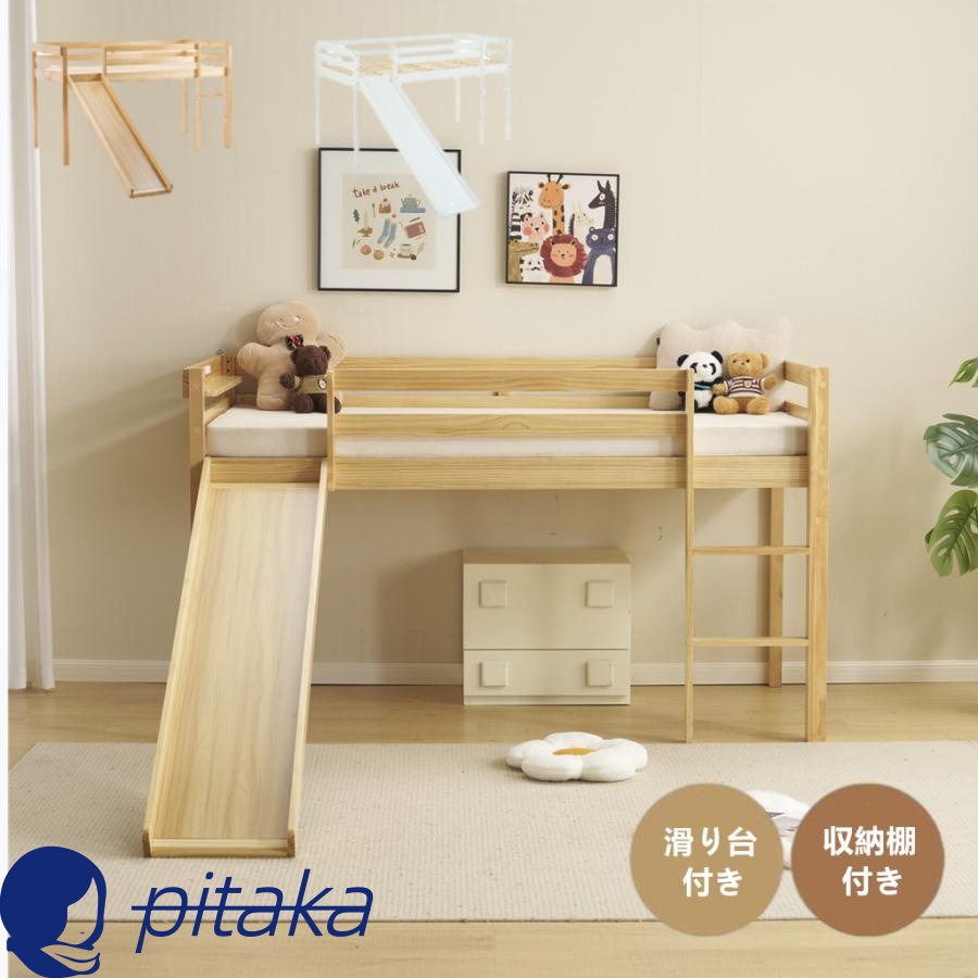 ロフトベッド シングル 木製 頑丈 ロータイプ 滑り台付き 収納棚付き 階段付き コンセント付き 宮付き 天然木 収納 北欧風 大人 一人暮らしベッド ロフトベッド