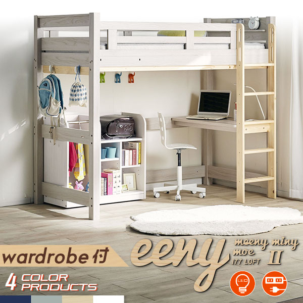 ■【特許構造】ロフトベッド eeny(イーニー) Hi wardrobe H176cm 4色対応 システムベッド 机付き 子供 大人 ハイタイプ デスク 学習机 おし