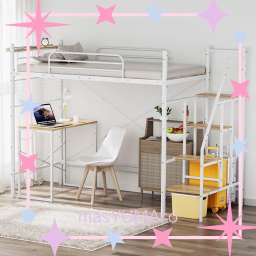 ■ロフトベッド 子供 おしゃれ ベッド シングル 白 ベッドフレーム 棚付き シングルベッド 宮棚付きベッド コンセント ベット おしゃれ ス