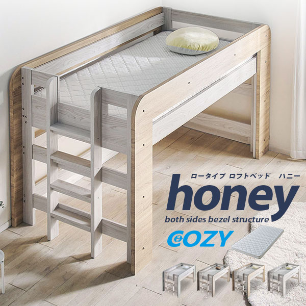 ■【特許/超耐震構造】ロータイプ ロフトベッド honey(ハニー) マットレスセット 木製 子供用 シングルベッド コンパクト おしゃれ すのこ
