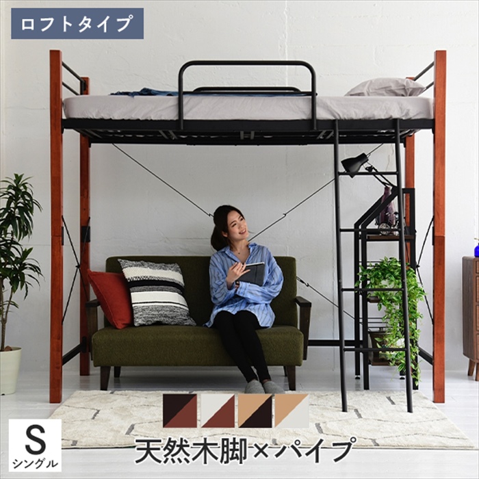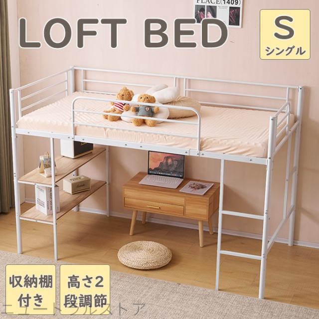 ■ニュ「Sシングル 」ロフトベッド パイプベッド シングルベッド 耐震 ベッド コンセント付き 子供ベッド 収納付 ロフトベッド段階 二段ベ