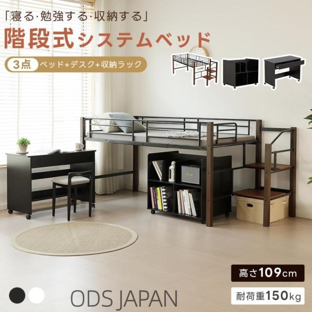 ■ODSシステムベッド ロフトベッド パイプベッド シングルベッド 宮 子供ベッド ロータイプ ミドルタイプ 耐荷重150kg 分割可能 子供部屋