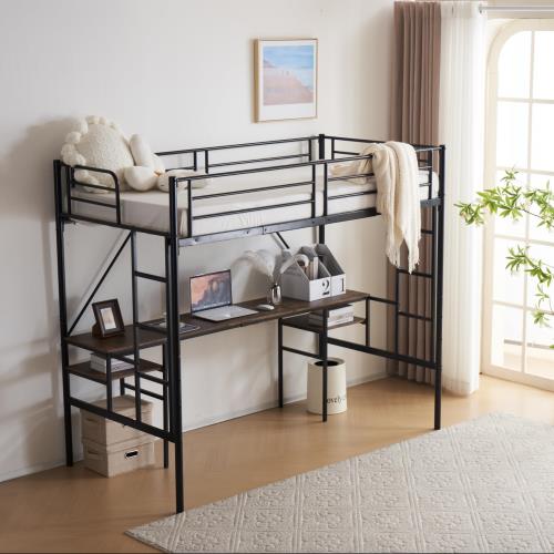 ■【人気】ロフトベッド シングル パイプベッド デスク付き コンセント付き 収納棚 子供ベッド 北欧風 二段ベッド 子供部屋 高さ170cm 大