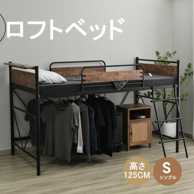 ■ロフトベッド パイプベッド耐荷重150kg 高さ125cm シングル システムベッド ロータイプ ミドルタイプ 収納 北欧風 棚付く ロータイプ 収