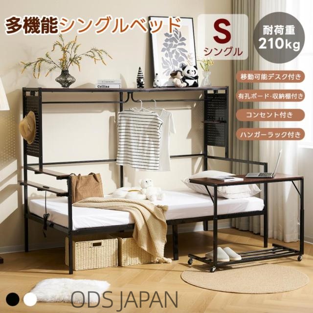 ■ODSシステムベット ロフトベッド シングルベット パイプベッド スチールネット付き 移動型デスク付き 宮棚 コンセント付き ラック棚付き