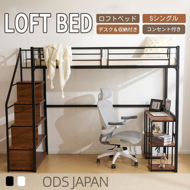 ■ODS「Sシングル 」ロフトベッド パイプベッド シングルベッド 耐震 ベッド コンセント付き 子供ベッド 収納付 ロフトベッド段階 二段ベッ