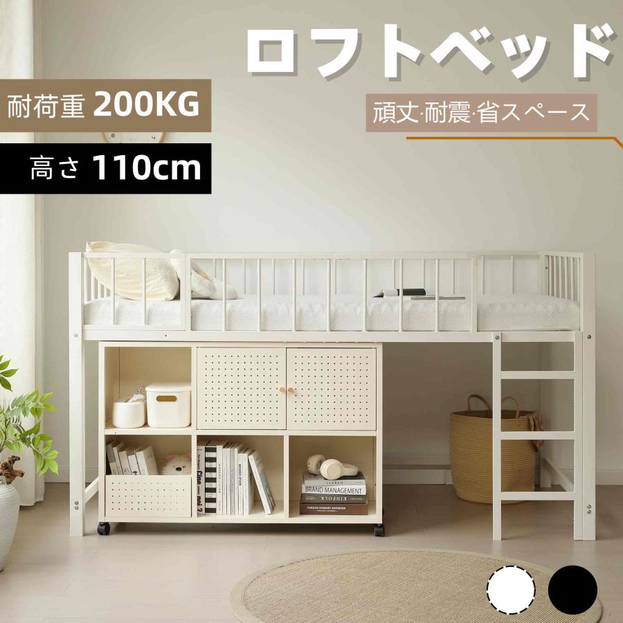 ■ロフトベッド+金属製キャビネット パイプベッド シングル ロフトベッド ロータイプ 子供ベッド シングルベッド 下収納 ロフト ベッド 省