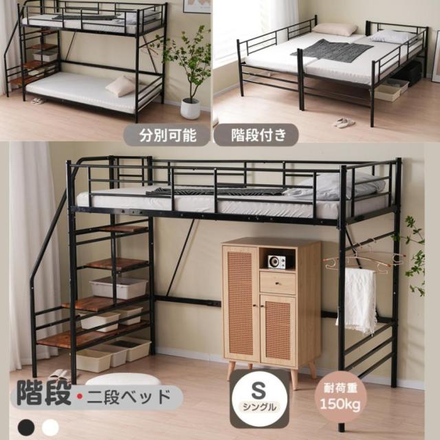 ■二段ベッド 2段ベッド 親子ベッド ロフトベッド 分離 階段付き パイプベッド収納 スチール 耐震 ベッド 親子ベット パイプベッド パイプ