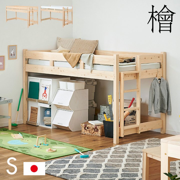 ■【5年保証/大川産/九州産ひのき使用】国産 ロフトベッド S シングルサイズ ヒノキ 檜 木製 シングルベッド システムベッド システムベッ