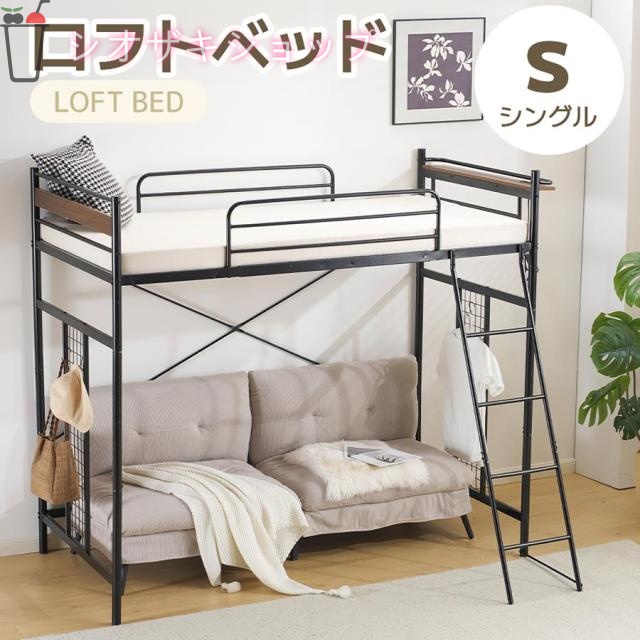 ■ロフトベッド パイプベッド シングルベッド ロータイプ 収納 北欧風 大人 一人暮らし スチール 高さ調整可能 耐荷重120kg 耐震
