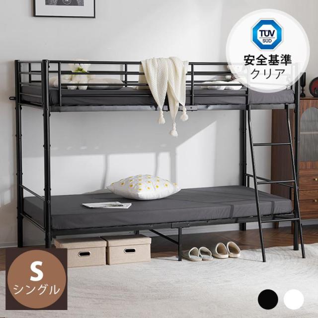 二段ベッド ロフトベッド 高さ150cm 耐荷重150kg シングルベッド パイプ 耐震 頑丈フレーム 大人ベッド 子供部屋 寮 学生寮 ミドルタイプ 二段ベッド シングル