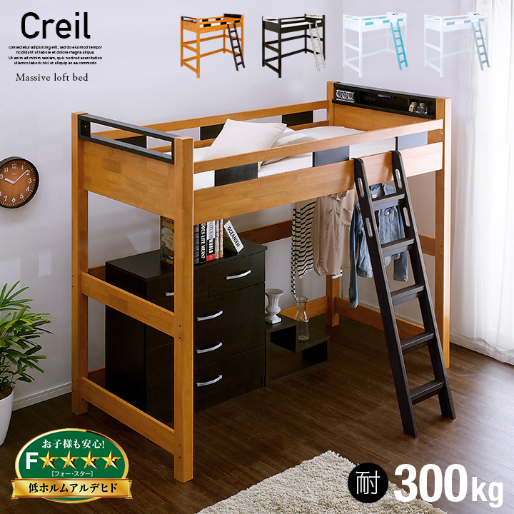 ■【耐荷重300kg/照明&コンセント付き】宮付き ハイタイプ ロフトベッド Creil loft5(クレイユ ロフト5) H180cm 4色対応 木製 ロフトベッ