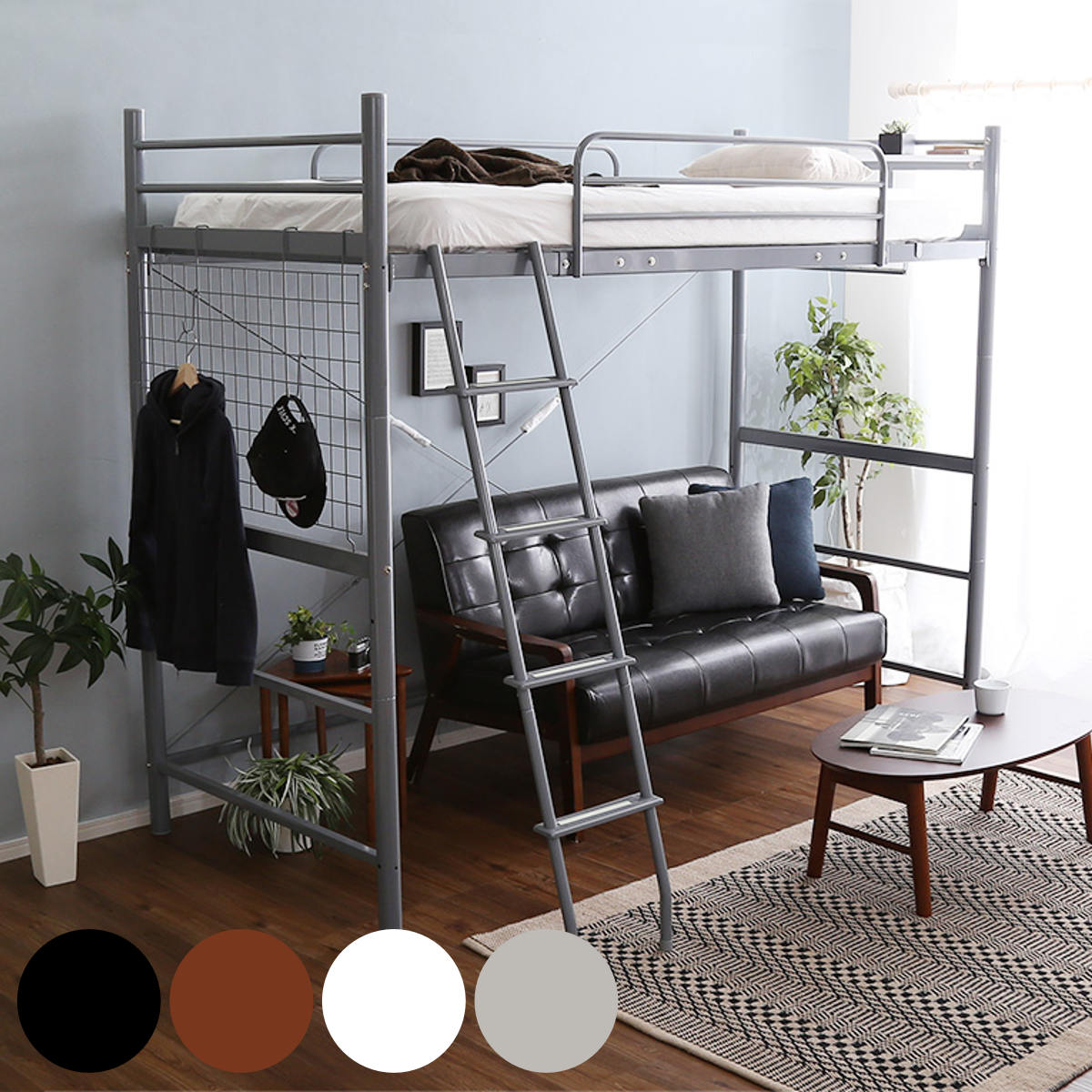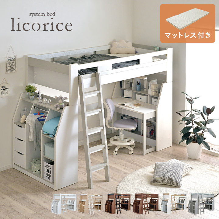 ■ロフトベッド ハイタイプ 大人 システムベッド 子供 中学生 デスク 分割 学習机 licorice(リコリス) 6色対応+ココナッツパームマットS am