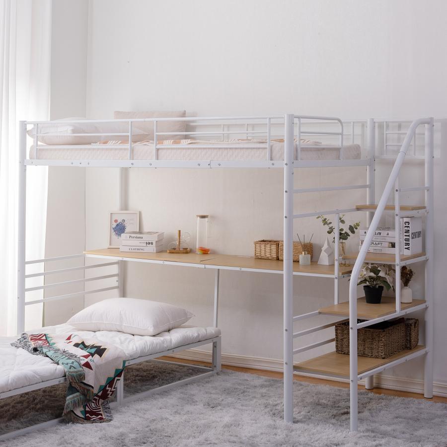 ■システムベット ロフトベッド 二段ベッド シングル デスク付き 收納棚付き パイプベッド 耐震ベッド 部屋二段ベッド ハシゴ階段 高さ170