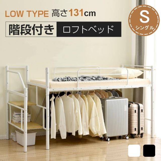 ロフトベッド 階段付き パイプベッド シングル コンセント付き 収納 子供ベッド