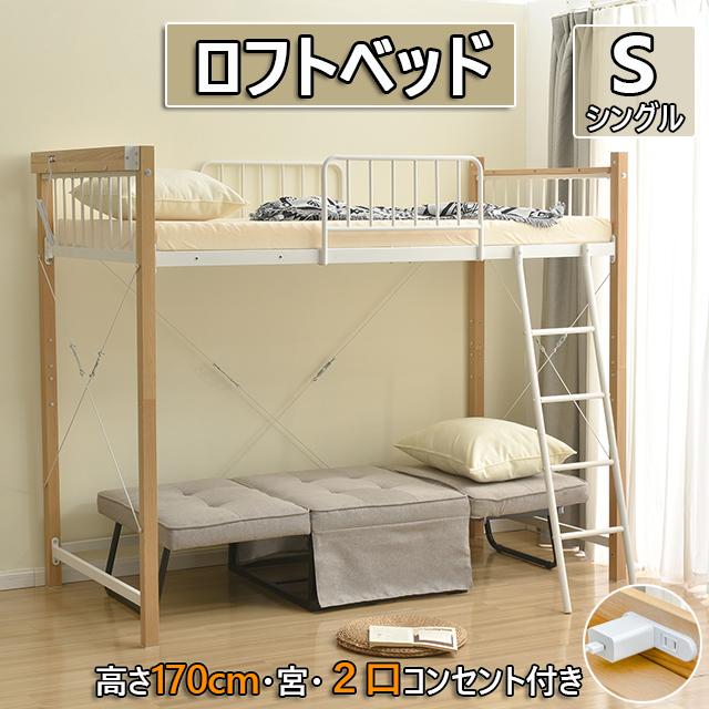 ■「クーポン配布中」「Sシングル 」ロフトベッド パイプベッド シングルベッド 耐震 ベッド コンセント付き 子供ベッド 収納付 ロフトベッ