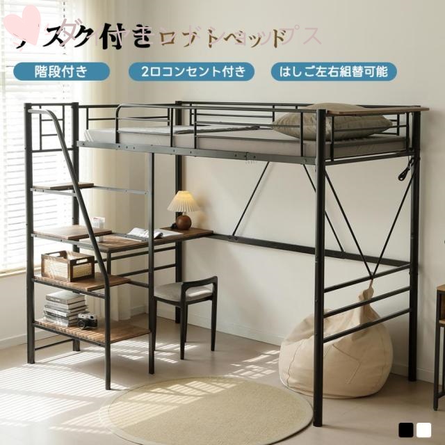 ロフトベッド 耐震ベッド パイプベッド デスク付き コンセント付き S シングルベット スチールベッド 階段付き 収納スペース 省スペース 子供部屋 二段ベッド 子供 大人用 北欧風 新生活応援