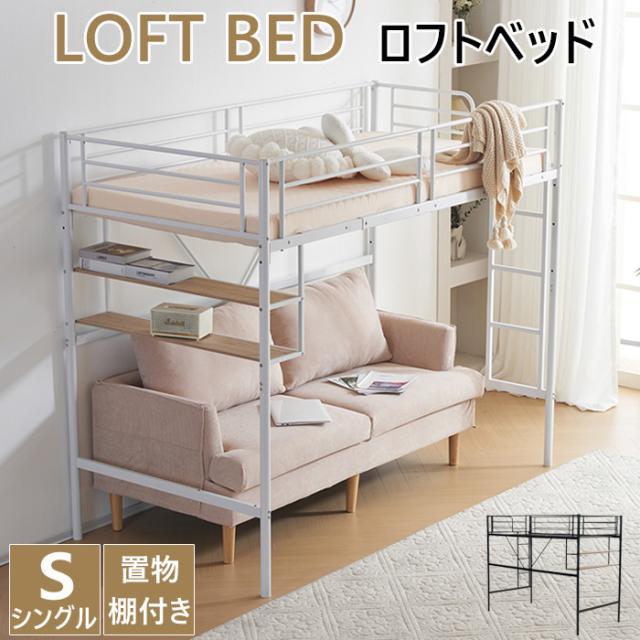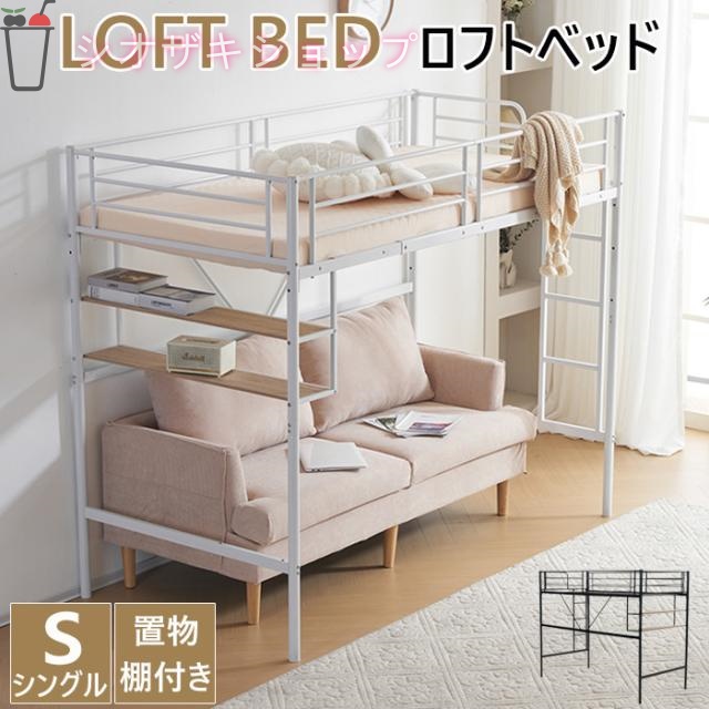 ロフトベッド 階段付き S パイプベッド シングル コンセント付き 収納 シェルフ付き 子供ベッド ハイタイプ 二段ベッド 子供部屋 シンプル おしゃれ