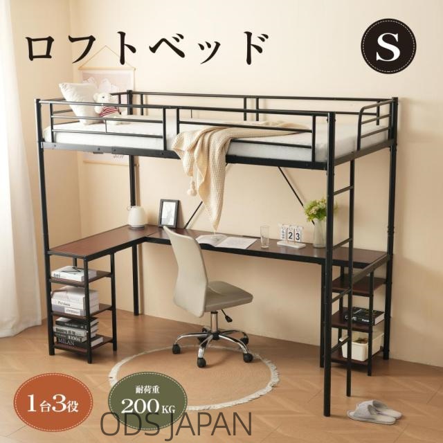 ODSパイプベッド ロフトベッド システムベッド デスク付き 高さ170cm シングルベッド 耐震ベッド 収納棚付き デスク付き 収納ラック付き 二段ベッド 子供部屋 スチール 北欧風 新生活応援 一人暮らし