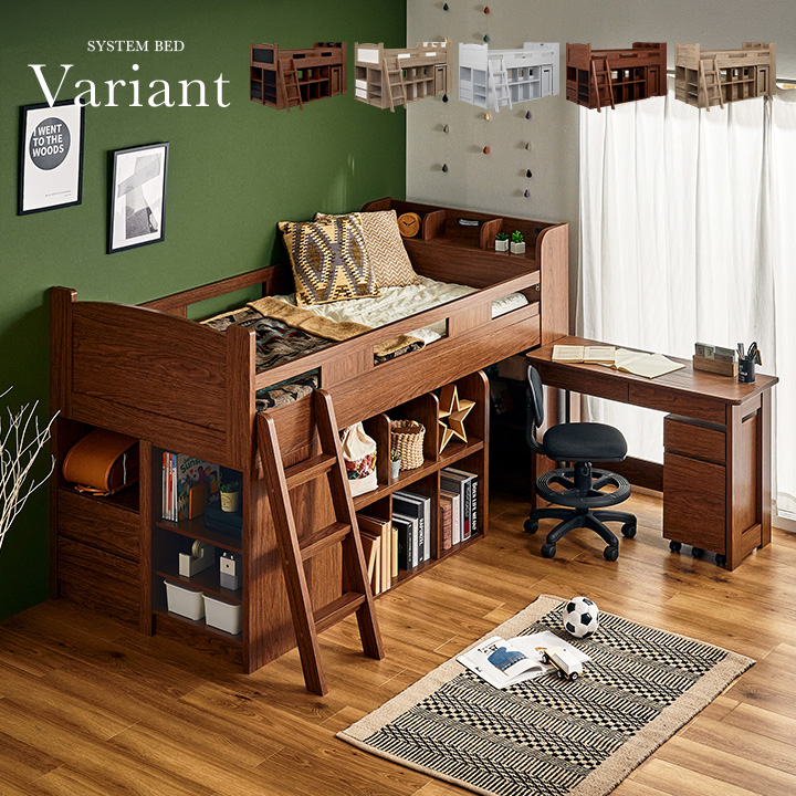■【レイアウト自由自在】システムベッド ロフトベッド システムベッドデスク 学習机 学習デスク 大人用 子供 女の子 分離 分割 ロータイプ