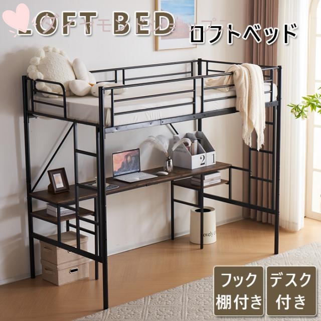 ■ロフトベッド ロフト シングル S デスク付き 収納付き 耐荷重120kg 子供ベッド パイプ製 子供部屋