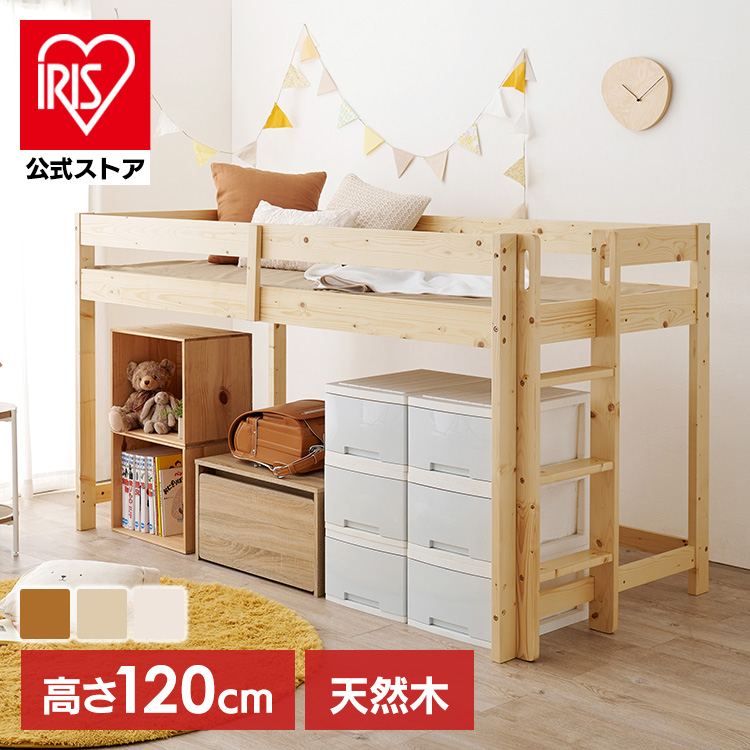 ■本体サイズ [外寸] 幅102.5×奥行209×高さ183cm [内寸] 【共通】 (床面)幅97×奥行197.5cm (サイドガード)幅73×高さ30.5cm 【ミドルタイプ】 (床面高さ)高さ61cm (床面下)幅94.5×奥行195.5×高さ53cm 【ロフトタイプ】 (床面高さ)高さ148cm (床面下)幅94.5×奥行195.5×高さ140cm (はしご出幅)34cm ■材質 [フレーム]スチール(粉体塗装) [支柱]ラバーウッド(ラッカー塗装) ■収納量・耐荷重 [床面]約120kg以下 ※記載は商品仕様の一部です。仕様説明不足等の理由での返品はできません。特に適合等は必ずご確認ください。