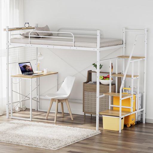 ロフトベッド パイプベッド シングルベッド デスク付き 耐震ベッド 収納棚 階段付き 収納フック 子供ベッド 二段ベッド 子供部屋 パイプ 金属 大人 一人暮らし 北欧風 新生活