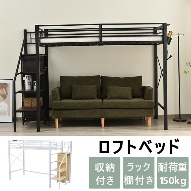 ロフトベッド 階段付き パイプベッド システムベット 收納付き 耐震ベッド シングル ラック棚付き 子供ベッド二段ベッド 子供部屋二段ベッド スチール 北欧風 新生活応援
