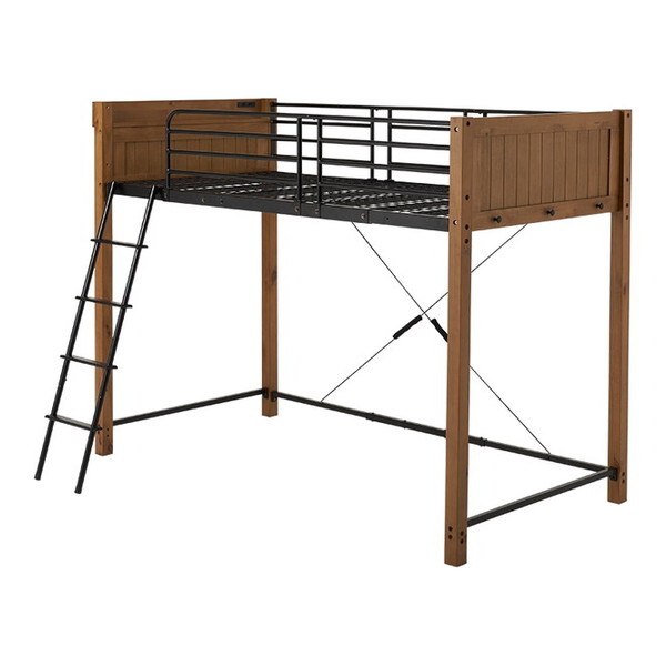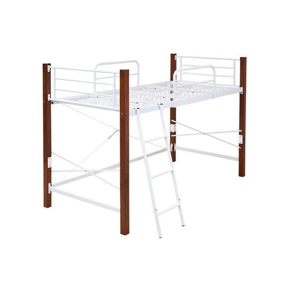 ■【お客様組立】JKプラン IRI-1042SET-WHBR 直送 代引不可 【木彩】 天然木脚 パイプベッド ハイタイプ IRI1042SETWHBR ロフトベッド シン