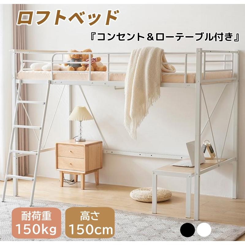 ロフトベッド シングル コンセント付き ミドルタイプ 高さ150cm ローデスク付き パイプベッド